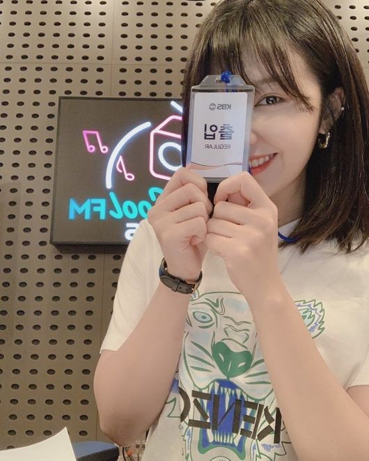 공개된 사진 속 정은지는 라디오 부스에서 KBS 출입증을 들고 미소짓고 있다. 정은지는 출입증으로 얼굴 반을 가렸지만, 숨길 수 없는 미모로 눈길을 끈다.