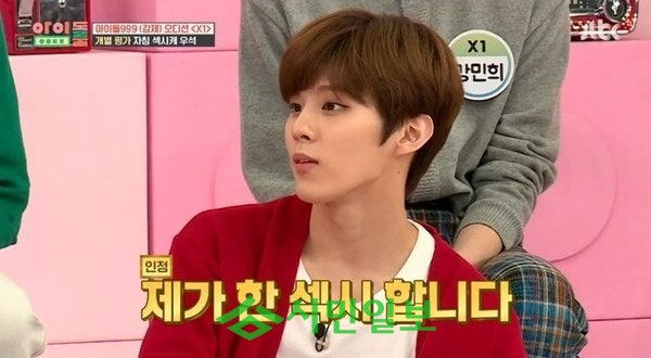 이날 MC 정형돈은 "엑스원의 자칭 섹시 캐릭터는 김우석이다. '프로듀스X101' 당시 '러브샷(Love Shot)' 무대에서 이한결과 조승연 군을 제치고 당당하게 센터에 등극했다"고 말했다.