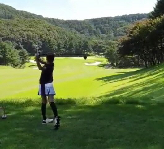 공개된 영상 속에는 골프장에서 공을 치고 있는 송지아의 모습이 담겼다. 한 번 스윙을 연습하던 송지아는 실전에서는 프로 못지 않은 실력을 보여주고 있다.