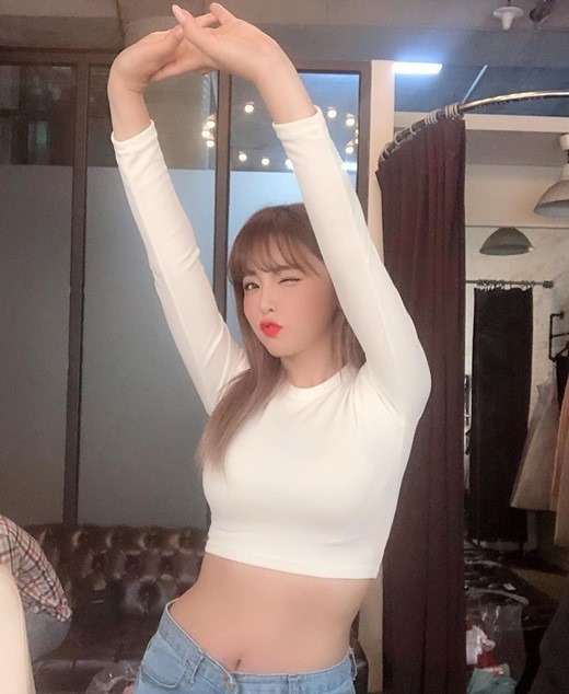 홍진영은 최근 자신의 인스타그램에 "촬영 중에 찍은 사진 크롭티 입고 사진 찍을 땐 배에 힘을 많이 줘야 함. 복근이란 없다. 8월 전에 복근 조금이라도 만들어볼까 합니다만. 운동 안 좋아하는 1인"이라는 글과 함께 두 장의 사진을 게재했다.