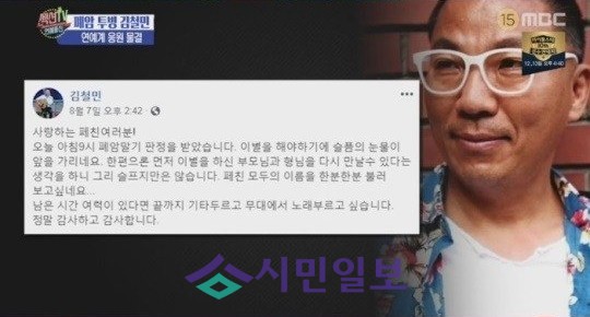 최근 방송된 MBC '섹션TV 연예통신'에서는 개그맨 김철민의 폐암투병 소식을 전하는 모습이 전파를 탔다.