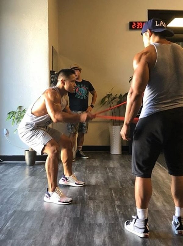 사진 속 그는 여유롭게 길거리를 거닐고 있다. 또한 헬스장을 방문해 근력운동을 하기도 했다.