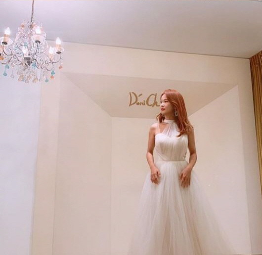 김지민이 아름다운 웨딩드레스 자태를 뽐냈다.