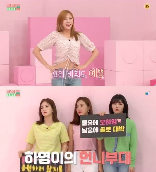 MC 정형돈이 "멤버들이 어떤 조언을 해줬냐"고 묻자, 오하영은 "은지 언니는 금전적인 조언을 해줬다"며 "'스태프를 많이 데리고 다니면 안 된다. 돈이 많이 나간다'고 했다"고 털어놔 웃음을 자아냈다.