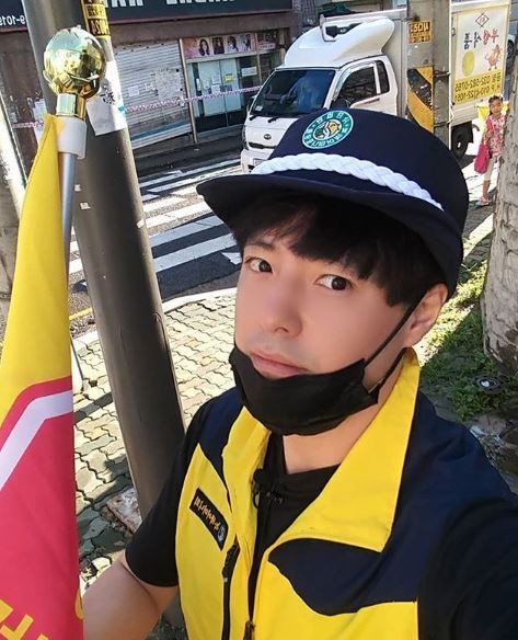 노유민은 11일 자신의 인스타그램을 통해 "우리 아이들의 등교길 안전을 위한 #녹색 어머니회.. 1학년 2학기 아빠 노유민 출동.. 부모 방위대 #노훈수"라며 #첫째 #노아 #초등학교 #아빠 등 해시태그를 달아 사진 한 장을 게재했다.
