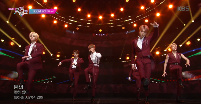 한편 NCT DREAM은 버건디 컬러 의상을 맞춰 입고 ‘BOOM’의 굿바이 무대를 보여줬다. 눈을 뗄 수 없는 비주얼과 매력 넘치는 퍼포먼스로 팬들의 열기를 더욱 끌어올렸다.
