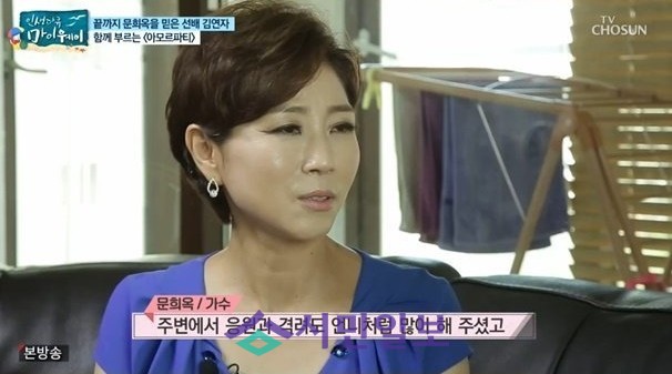 이어 문희옥은 "주변에서 응원과 격려도 많이 해주셨고, 이번 일로 노래 안 하려고 다 접으려고 했다. 옷도 버렸고, 상장, 상패 다 버렸다. 마음은 그렇게 먹고 있었는데 노래쟁이라서 그런지 '노래밖에 없구나'라는 생각이 들었다"고 말했다.