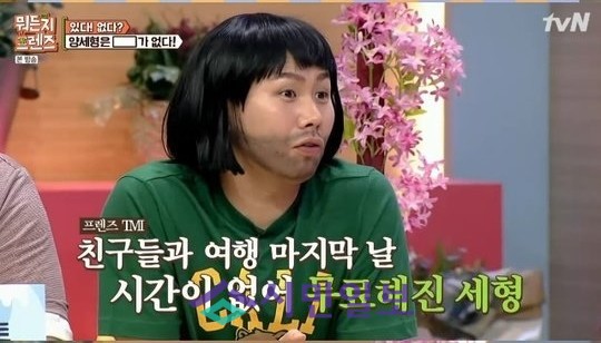 ‘양세형은 ~가 없다’는 주제로 문제가 출제된 가운데 출연자들은 각자 생각하는 답을 내놨다. 그때 황제성은 “양세형이 털이 없다. 원래는 털이 있었는데 친구들과 여행을 갔는데 다녀온 후에 털이 없어졌다”고 공개했다.