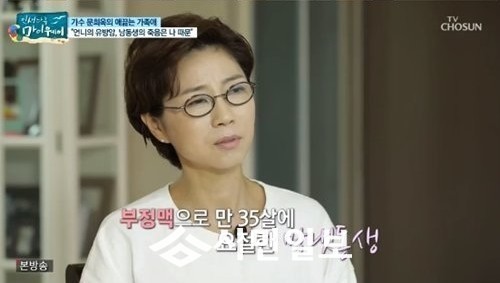 최근 방송된 TV조선 시사교양프로그램 ‘인생다큐 마이웨이’(이하 ‘마이웨이’)에서는 가수 문희옥과 그의 가족에 대한 이야기가 안방을 찾아갔다.