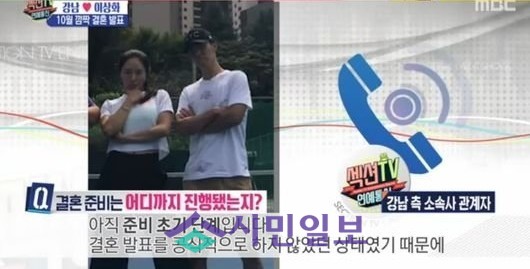 최근 방송된 MBC 예능 '섹션TV 연예통신'에서 예체능 커플인 강남과 이상화가 1여년 열애 끝에 10월에 백년가약을 맺는다는 깜짝 결혼소식을 전해 눈길을 모았다.