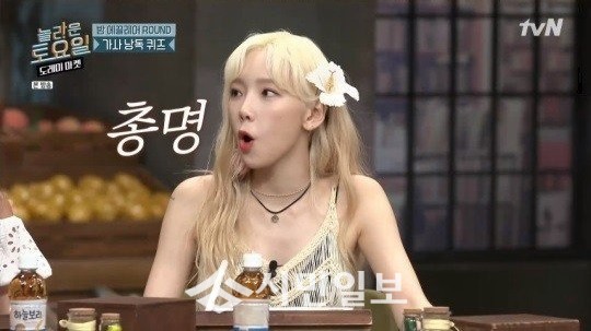 최근 방송된 tvN 예능프로그램 '놀라운 토요일-도레미마켓'에서는 간식 타임에서 태연이 첫번째로 정답을 맞춘 모습이 안방을 찾아갔다.