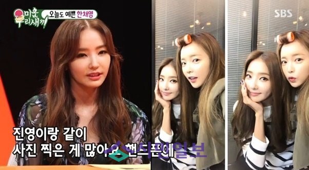 이날 서장훈은 "아들이 엄마 한채영보다 홍진영이 더 예쁘다고 했다고 한다"고 운을 뗐고, 한채영은 "(홍) 진영이랑 예능을 하면서 같이 사진 찍은 게 많은데 아들이 '이 누나 예쁘다'고 하더라"라고 운을 뗐다.