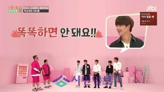 진지하게 입단 조건을 설명하던 육성재는 "똑똑하면 안 돼요"라고 말해 모두를 폭소하게 했다.
