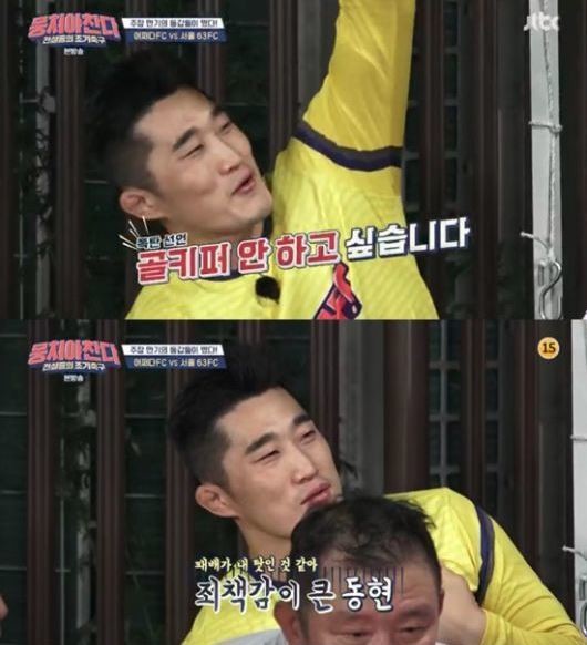 김동현은 조용히 손을 들고 "골키퍼 안 하고 싶습니다"라고 말하며 모두의 이목을 집중시켰다. 김동현은 부담감과 죄책감이 크다고 털어놨다. 김동현은 "한 골 먹히면 돌아가면서 저한테 뭐라 하시는데"라며 연장자가 골키퍼를 했으면 좋겠다고 제안했다.
