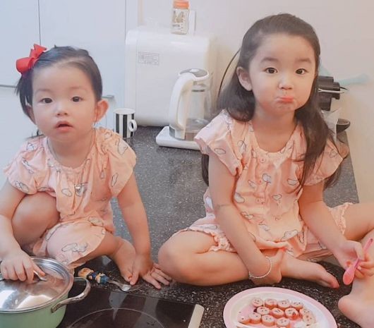 공개된 사진에는 커플 잠옷을 입고 카메라를 응시하고 있는 두 딸의 모습이 담겨있다. 어느덧 폭풍 성장한 모습과 함께 깜찍한 외모를 자랑해 눈길을 끈다.