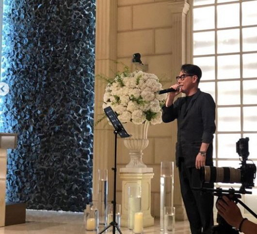 공개된 사진에는 결혼식 무대에서 축가를 부르고 있는 윤종신의 모습이 담겨있다.