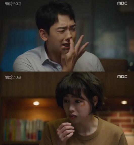 12일 밤 8시 55분 방송된 MBC '웰컴2라이프' 5회에서는 혼란에 빠진 이재상(정지훈 분)의 모습이 그려졌다. 이날 방송에서 이재상은 아침에 눈을 뜬 후 자신이 아직도 꿈 속에 있다는 사실에 혼란스러워 했다.