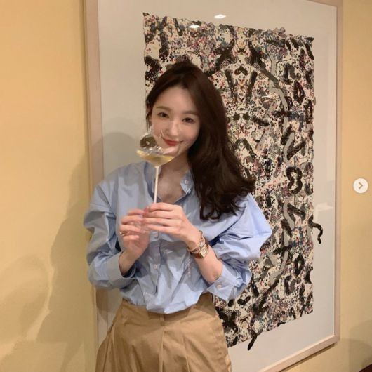 강민경은 17일 자신의 SNS에 사진 한 장을 게재했다. 공개된 사진 속 강민경은 와인잔을 들고 카메라를 향해 맑은 미소를 짓고 있다.