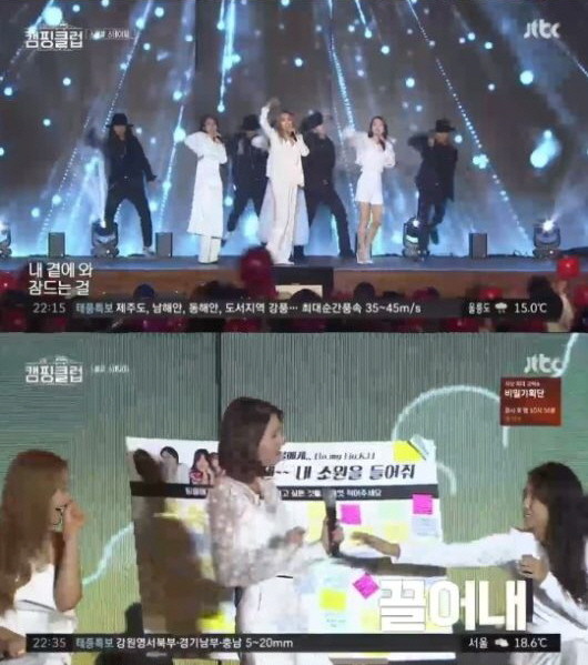22일 방송된 JTBC '캠핑클럽'에서는 핑클이 맹연습 끝에 성공적으로 공연을 마쳤다.