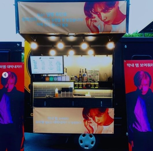 이는 샤이니의 멤버 민호가 보낸 커피차다. "필승!! 일병 최민호 슈퍼스타 이태민 응원을 명 받았습니다! 이에 신고합니다 필승", "슈퍼엠 대박내자!!", "막내 탬 보여줘라!" 등의 문구를 통해 확인할 수 있다.