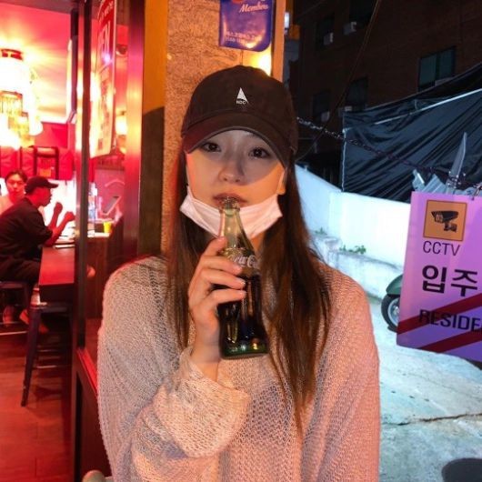 공개된 사진 속에는 시스루룩의 상의를 입고 모자와 마스크를 쓴 채로 콜라를 마시고 있는 손연재의 모습이 담겨있다.