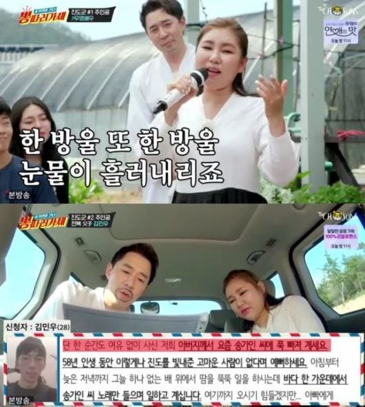 두 번째 사연 신청자는 바다 위에 있었다. 전복 양식장을 찾아간 것. 아버지가 송가인을 너무나 좋아한다며, 한 평생 가족을 위해 헌신하신 '가장'에게 힘을 달라고 아들이 사연을 냈다.