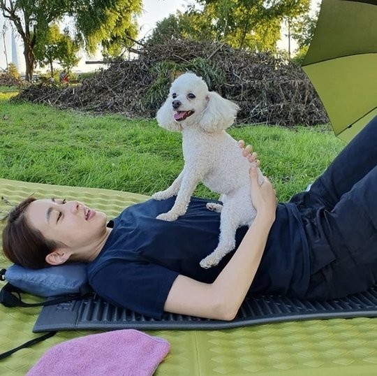 사진 속에는 한강공원에서 반려견을 배에 올린 채 누워있는 강소라의 모습이 담겼다. 강소라는 반려견을 보며 미소짓고 있다. 민낯에도 빛나는 강소라의 청순한 미모가 돋보인다.