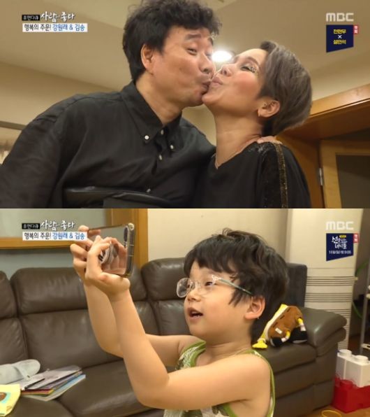'사람이 좋다'에 출연한 강원래, 김송 부부가 늦둥이 아들 강선 군과 함께 지내는 일상을 공개했다.