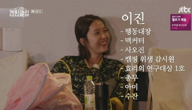 JTBC 예능 ‘캠핑클럽’의 이진이 무공해 매력을 발산하며 웃음과 힐링을 동시에 전하고 있다.