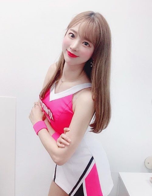 공개된 사진 속 김한나는 핑크색 키움 치어리더 옷을 입고 카메라를 향해 웃음을 짓고 있다.
