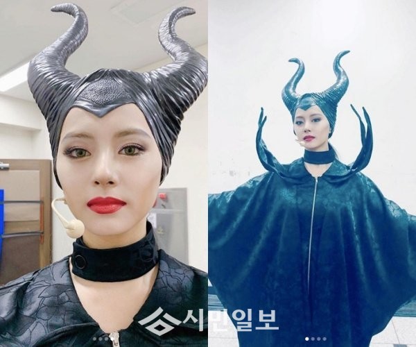 사진 속에서 쯔위는 말레피센트로 변신한 모습. 의상부터 머리장식, 메이크업까지 영화 ‘말레피센트’의 말레피센트와 높은 싱크로율을 자랑한다.