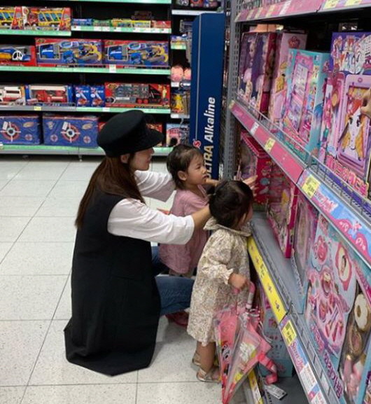 공개된 사진 속 김성은은 딸과 함께 손을 잡고 길거리를 거닐고 있는 모습이다. 이어진 사진 속 김성은은 마트에서 아이들과 함께 쇼핑을 하며 즐거운 시간을 보내고 있다 .