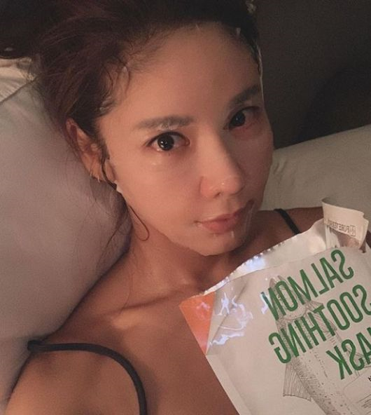 공개된 사진에는 침대에 누워 팩을 붙이고 있는 김준희의 모습이 담겨있다. 특히 40대 나이에도 잡티 하나 없는 피부를 뽐내 시선을 사로잡는다.