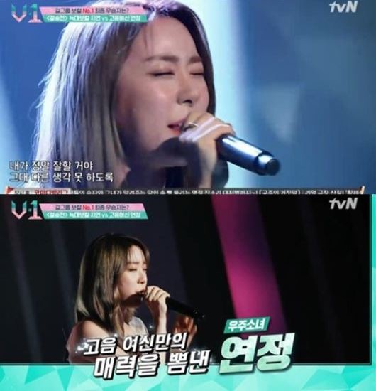 15일 오후에 방송된 tvN 'V-1'에서는 대망의 보컬 퀸 자리와 상금을 건 대결 우승자는 연정이었다.