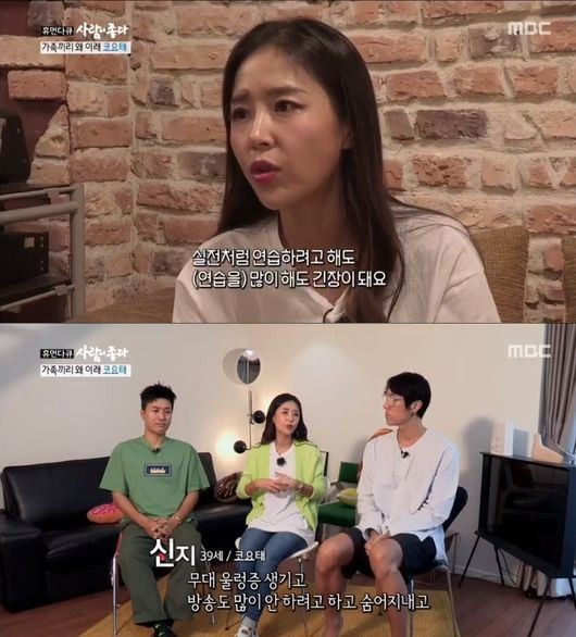 이후 신지는 손에 마이크를 꼭 쥔채 노래를 연습했다. 솔로 앨범이 나왔다는 신지는 실전처럼 연습을 한다고 말했다. 이어 연습을 하는데도 너무 긴장이 된다며 예전 사시나무 떨듯 떨었던 2008년을 떠올렸다. 신지는 그날 이후 무대공포증, 우울증이 찾아와 힘들었다고 전했다.