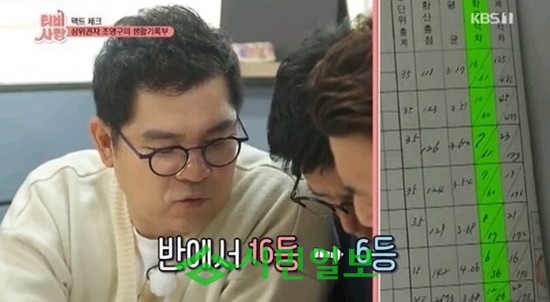 성적 역시 1학년 때는 '미'와 '양'이 많았지만, 3학년 당시에는 '수'와 '우'가 늘어나며 반 56명 중 6등을 하며 상위권이었음을 인증했다.