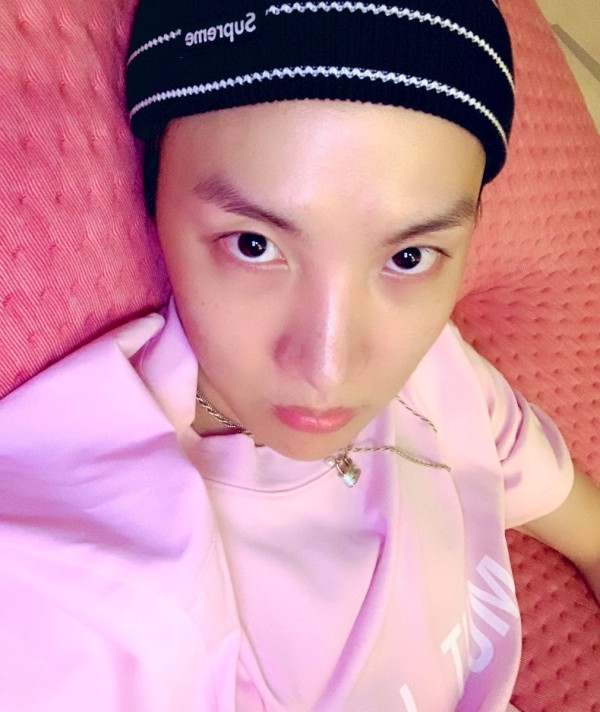공개된 사진에서 제이홉은 분홍색 티셔츠와 검은색의 비니를 쓰고 눈을 크게 뜨고 카메라를 응시하고 있다. 근접샷에도 돋보이는 꿀피부가 인상적이다.