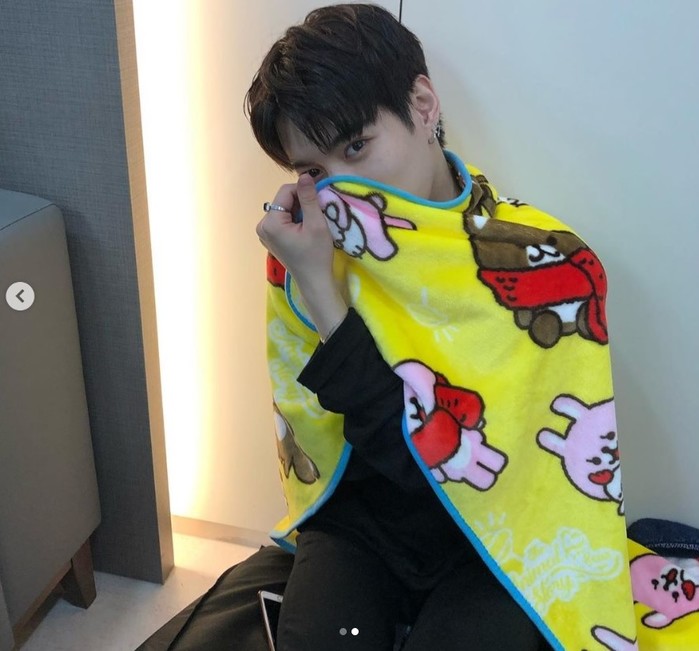 공개된 사진 속에는 레이찬이 귀여운 토끼 그림이 그려진 담요를 두르고 눈만 빼꼼 내놓은 채 카메라를 응시하고 있다. 훈훈한 비주얼을 자랑하는 레이찬의 깜찍한 모습이 여심을 저격한다.