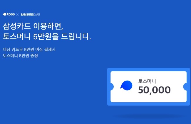 'tapta'이 정답인 이 퀴즈는 삼성카드에서 출제한 것으로 삼성카드는 이번 달까지 해당 카드로 5만원 이상 결제시 토스머니 5만원을 주는 혜자 이벤트를 진행하고 있다.