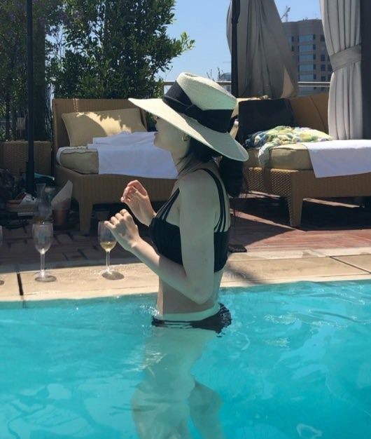 공개된 사진 속 손나은은 호텔 수영장에서 비키니를 입은 채 물놀이를 하고 있다. 손나은은 군살 하나 없는 완벽한 몸매를 자랑, 팬들을 감탄하게 만들었다.