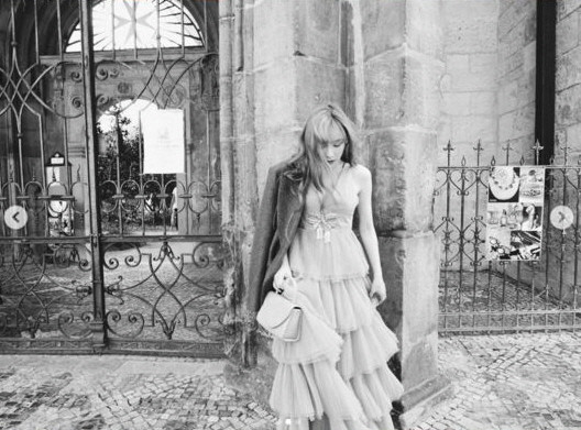 한 사진에서는 하늘빛의 투피스로 청순한 매력을, 또 다른 사진에서는 드레스로 우아한 매력을 드러내고 있는 것.