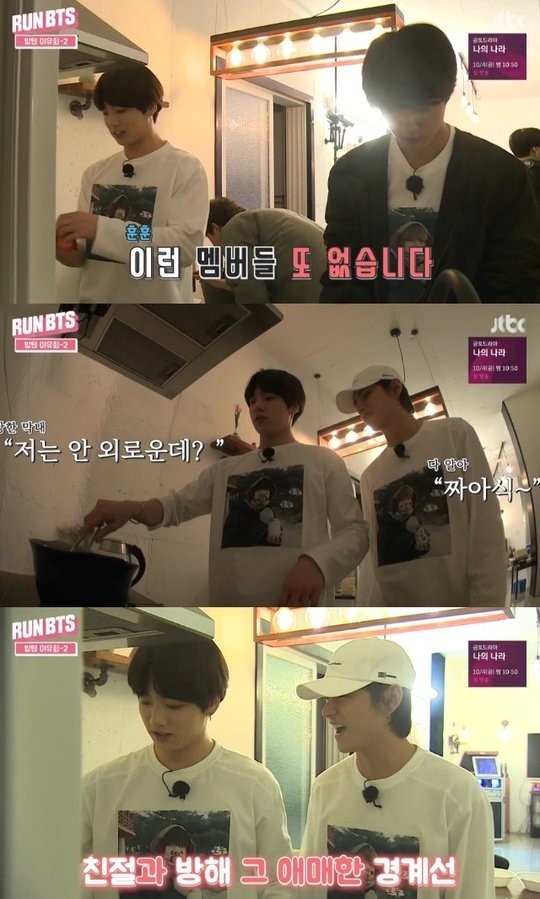 방탄소년단 정국과 뷔가 라면을 끓이면 환상의 호흡을 자랑했다.