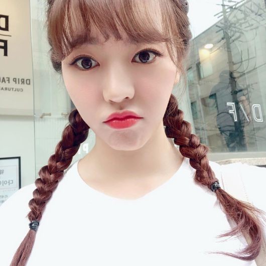 사진 속 써니는 양갈래 머리를 땋아내리고, 흰 티셔츠 차림으로 카메라를 보며 입술을 삐죽이고 있다.