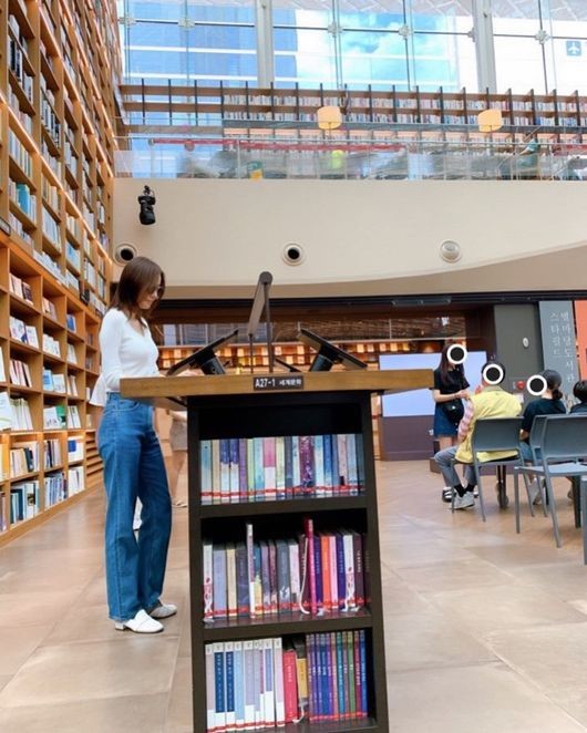 공개된 사진 속에는 복합 쇼핑몰에서 여유를 즐기고 있는 손태영의 모습이 담겼다. 손태영은 서점에서 책을 읽는가 하면, 영화관에서 영화를 관람하고 있다.