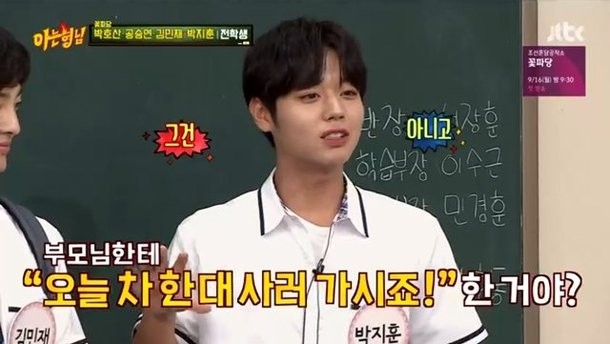 '아는 형님'에 출연한 박지훈이 부모님과의 에피소드로 폭소를 유발했다.
