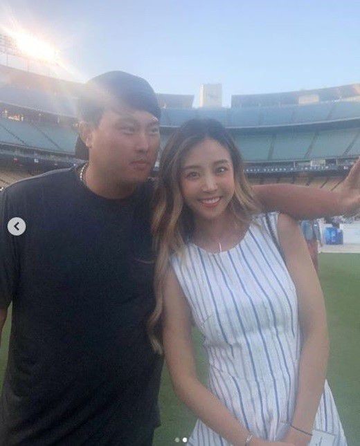 공개된 사진 속에는 류현진과 배지현의 투샷이 나란히 담겨 있다. 두 사람은 어깨를 다정하게 맞대고 달달한 신혼의 정석을 보였다.
