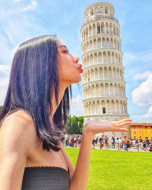 클라라가 섹시한 피사의 사탑 인증샷을 찍었다.