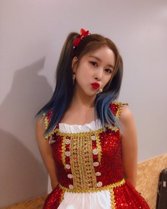 그룹 우주소녀의 다영이 양갈래 머리로 물오른 인형 미모를 자랑했다.