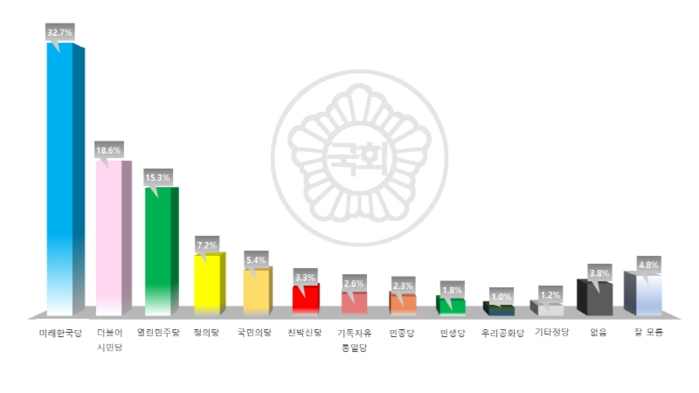 의석수 가능한 득표율 3% 이상은 정의(7.2%) 국민(5.4%), 친박(3.3%)