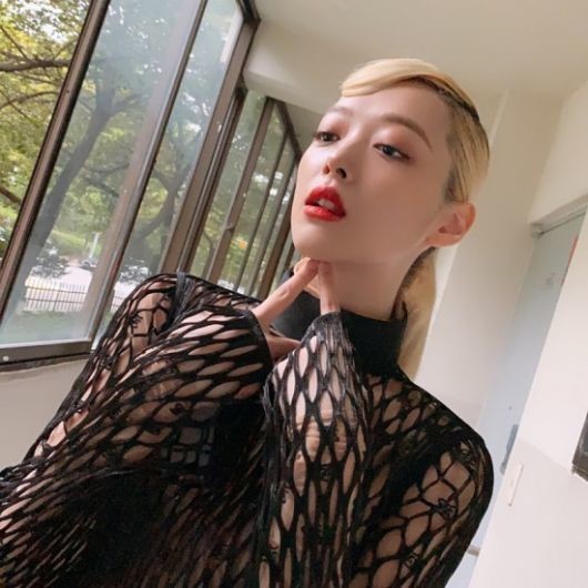 공개된 사진 속 설리는 한 패션 행사에 참석한 후 의상을 그대로 입고 인증샷을 남기고 있다. 금발 설리의 고혹적인 미모가 시선을 강탈한다.